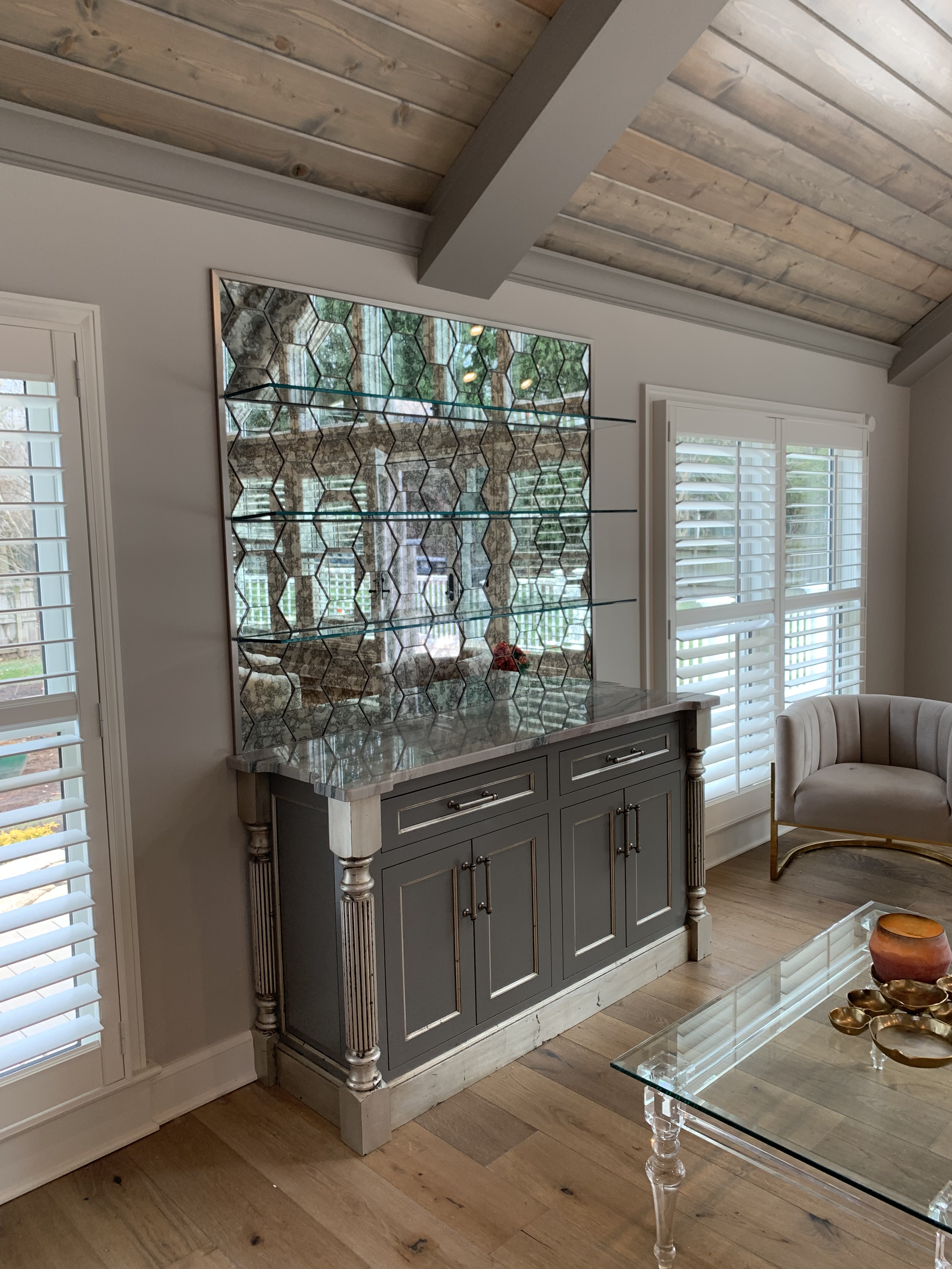 Every so often, clients will ask about the shape of the extrusions on our bypass doors. The main concern being, “Will it hold water?” With a sloped threshold and just a center guide for the glass, this option allows water to run off rather than pooling and causing mineral build up on the framework.